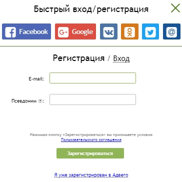 Для регистрации на Адвего достаточно ввести адрес эл.почты, догин и пароль исполнителя. Далее для автора будет доступен личный кабинет, где он сможет разместить портфолио, рассказать о себе и опыте работы. После заполнения данных, можно приступать к реализации задач. Исполнителю будет доступна фильтрация заказов по стоимости, теме и типу задания. Для начала работы над задачей необходимо нажать клавишу «Взять в работу» и приступать к выполнению после надписи «Заказ принят в работу».